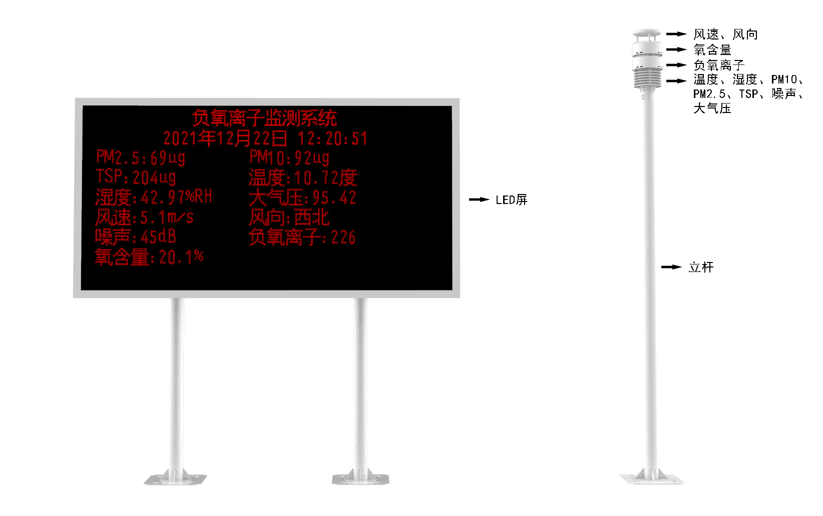 負(fù)氧離子在線監(jiān)測(cè)系統(tǒng)可全天候監(jiān)測(cè)空氣中負(fù)氧離子濃度,同時(shí)可根據(jù)用戶需求擴(kuò)展監(jiān)測(cè)項(xiàng)目,如:空氣溫度、空氣濕度、PM2.5、PM10、大氣壓力、氧含量、噪聲、風(fēng)速、風(fēng)向等氣象要素;模塊化結(jié)構(gòu)設(shè)計(jì),傳感器都可以單獨(dú)替換,配備專業(yè)安裝支架,現(xiàn)場(chǎng)可通過(guò)LED屏幕直接讀取數(shù)據(jù),亦可遠(yuǎn)程云平臺(tái)/WEB/微信公眾號(hào)實(shí)時(shí)查看數(shù)據(jù),后期運(yùn)營(yíng)維護(hù)方便。